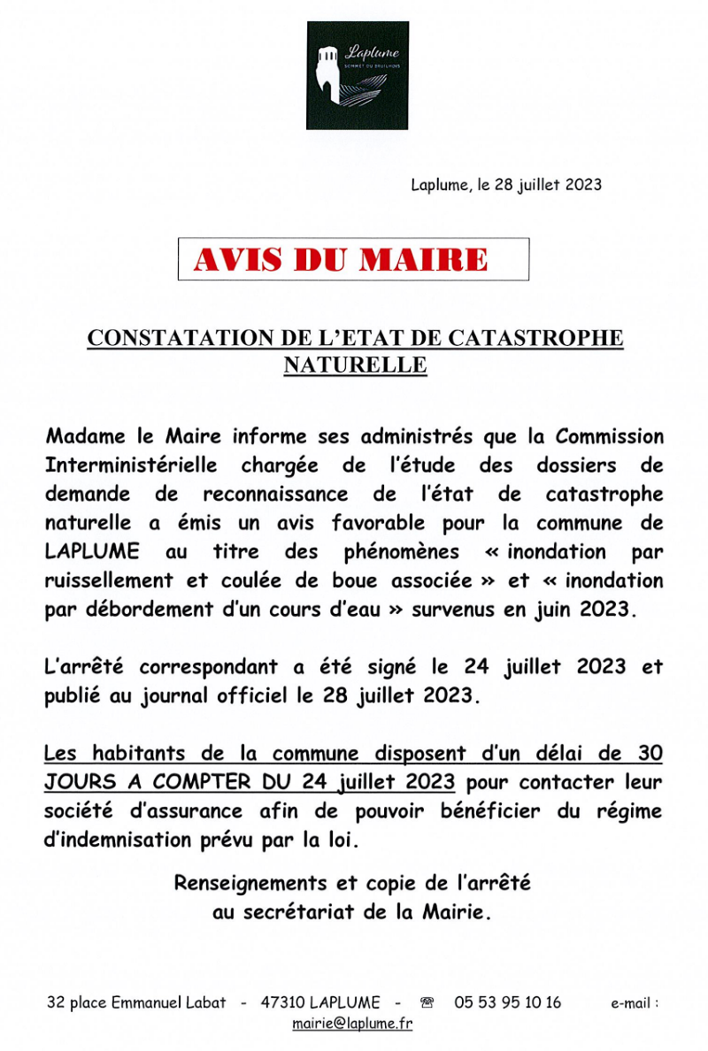 Constatation de l’état de catastrophe naturelle Submit a Comment Cancel replyYour email address will not be published. Required fields are marked *Comment * Name * Email * Website Save my name, email, and website in this browser for the next time I comment. Δ This site uses Akismet to reduce spam. Learn how your comment data is processed.